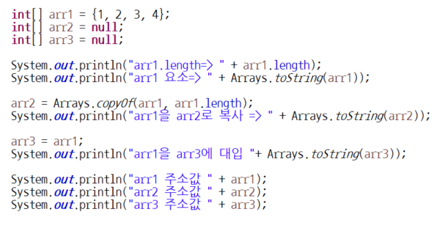 결과 => 복사한 배열은 값만 복사 하므로 주소값이 같지 않다.