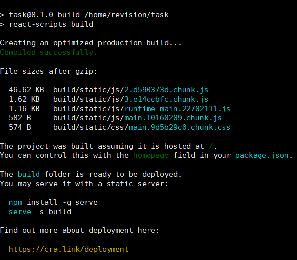 먼저 웹서버 ( Nginx )는 빌드된 파일을 사용하기 때문에 react 프로젝트의 빌드 산출물을 만들어 놔야 합니다.