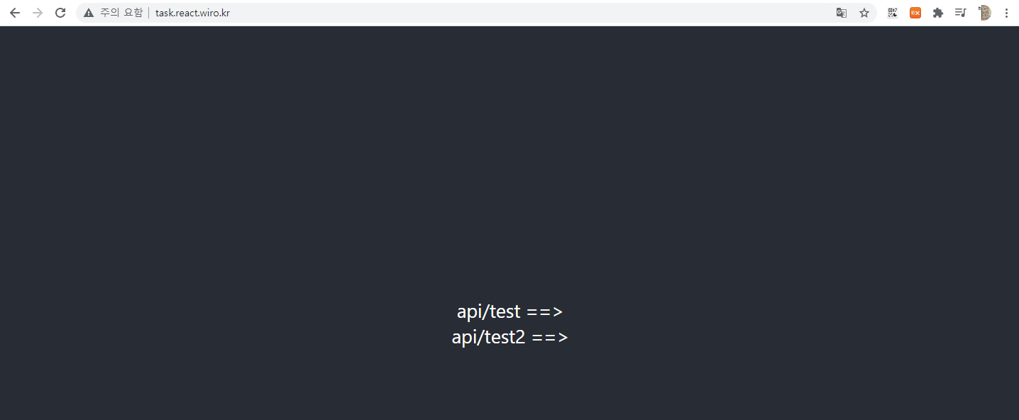 크롬 브라우저에서 task.react.wiro.kr 로 접속하면 App.js 에서 작성했던 내용대로 나오는 모습을 확인할 수 있습니다.